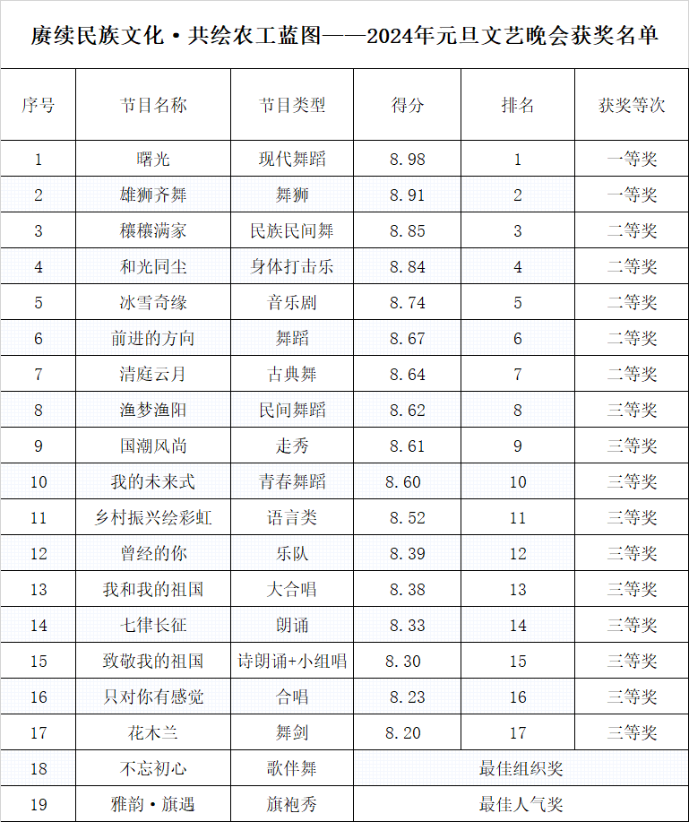 获奖名单
