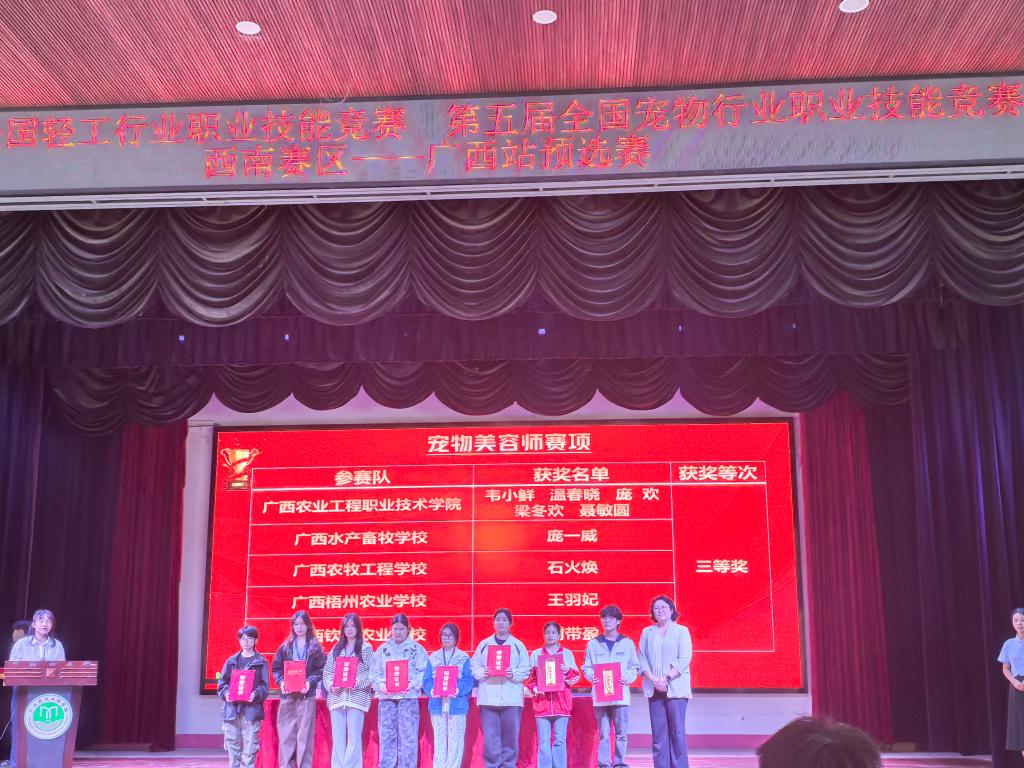 10月25日🤹🏻‍♀️,2025年全国轻工行业职业技能竞赛第五届全国宠物行业职业技能竞赛西南赛区——广西站赛事圆满落幕。彩神IV动物科技学院师生凭借扎实的专业理论功底与出色的实践操作能力,在比赛中脱颖而出,一举斩获14项荣誉,充分彰显了彩神IV宠物专业教育的过硬实力与育人成效🧑。