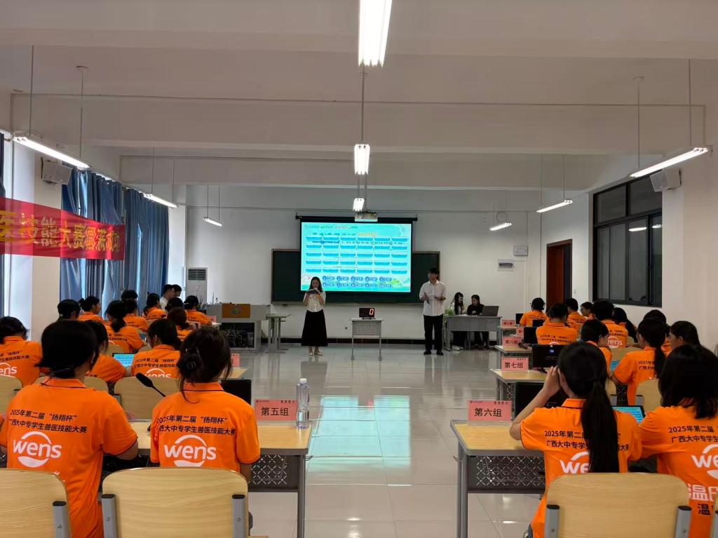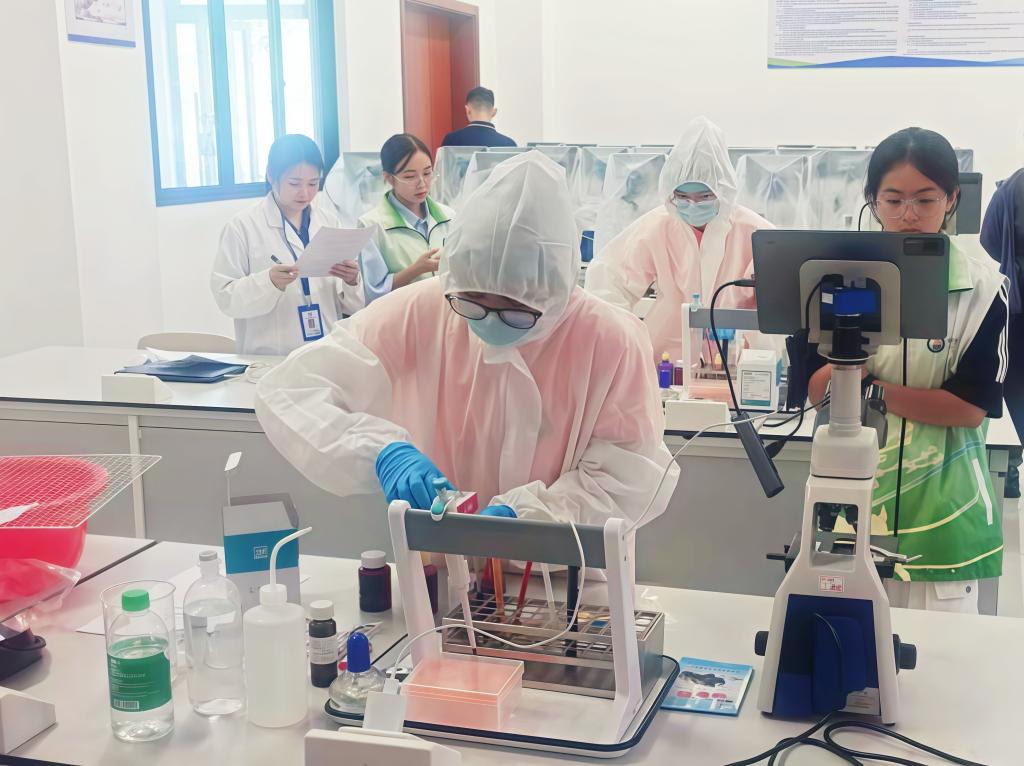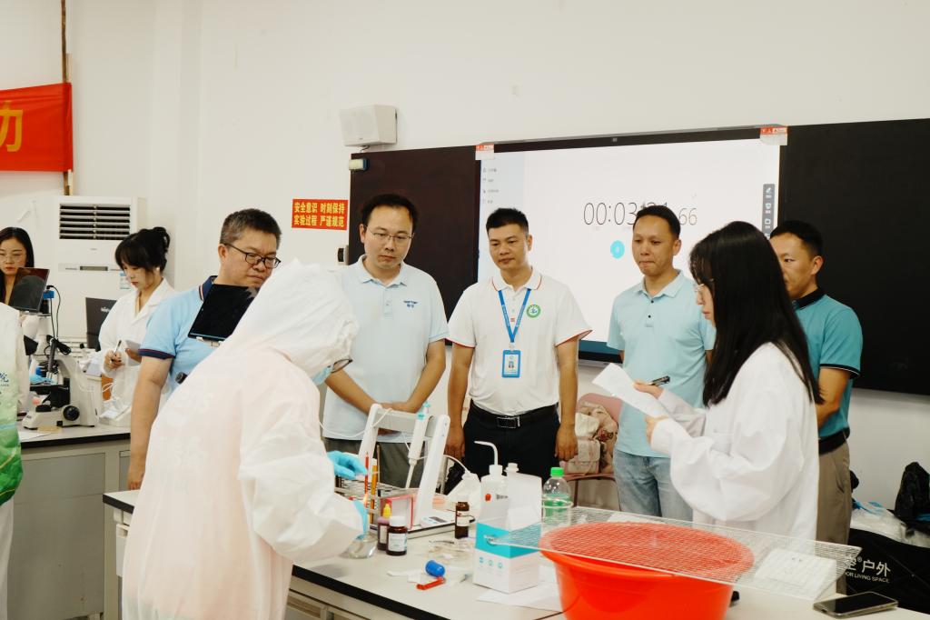 本次比赛采用“理论+实操”双重考核模式,全面考查学生的专业技能与综合应用能力。理论知识竞赛围绕兽医病理学、药理学🦫、临床诊断学等核心课程设置试题🫶🏻,全面考察选手对专业基础知识的理解与运用能力,为实操环节的精准操作奠定基础,践行“理论指导实践💁🏼♂️、实践检验理论”的赛事举办初衷。实操环节聚焦兽医专业核心技能💖,设置三大考核项目:鸡翅静脉采血、鸡心脏采血和细菌涂片染色镜检👩🔧。参赛选手们在操作中展现出扎实的专业基础与良好的职业素养,现场评委则依据操作规范👩🏻、完成效率与结果质量进行严格打分。温氏股份广西养猪公司为比赛的顺利开展提供了坚实物资保障。