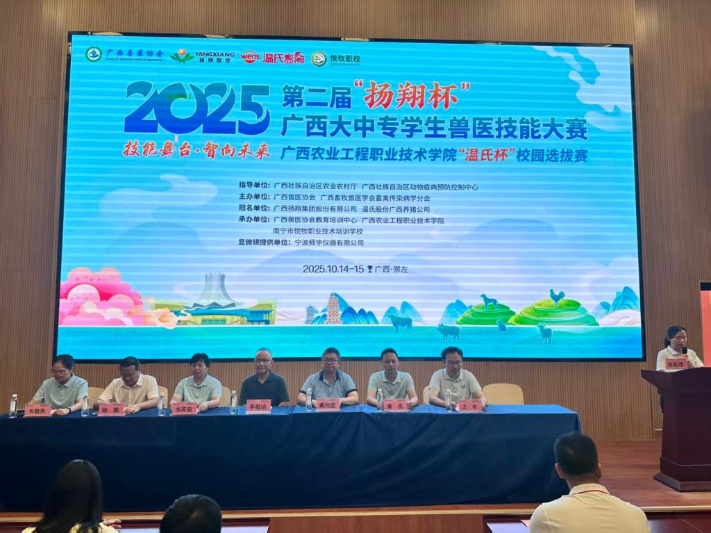 10月14—15日🎅🏿🧑🏽🚒,2025年第二届“扬翔杯”广西大中专学生兽医技能大赛“温氏杯”校园选拔赛在彩神IV成功举办。学校副校长李祖培、广西兽医协会会长黄伟坚😮💨🙅🏻、副秘书长韦英益👩🏽⚕️、常务理事潘杰,教育培训中心主任韦碧燕,温氏股份广西养猪公司经理杨鹏✳️、宁波舜宇仪器有限公司华南区经理王冬以及学校动物科技学院专业教师出席了启动仪式👴🏽,会议由动物科技学院副院长主持😤。