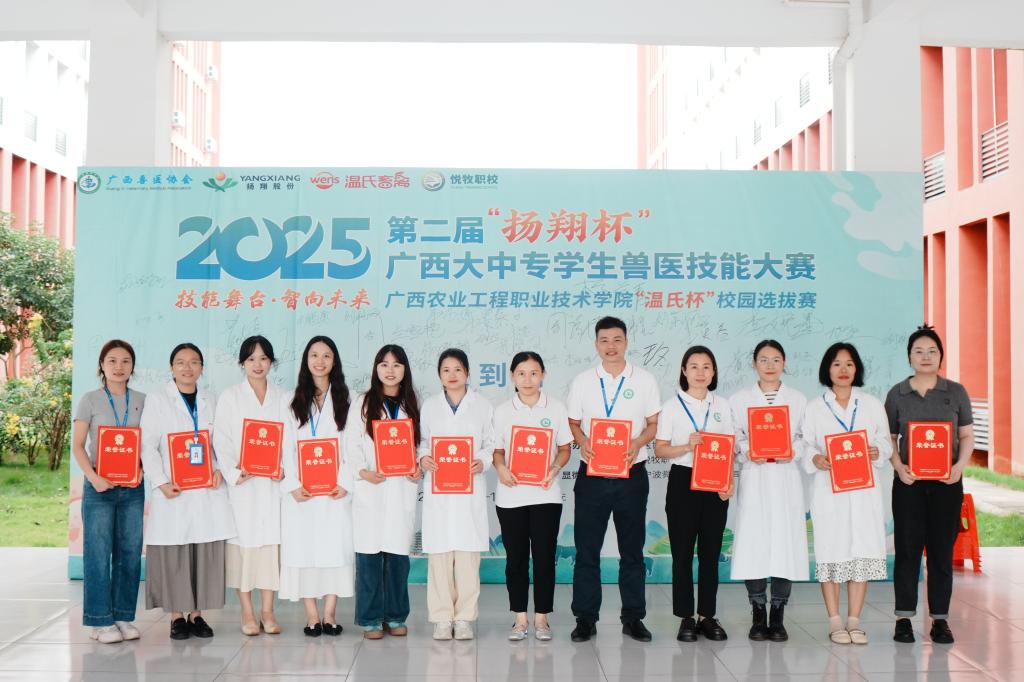 此次选拔赛为学生提供了展示自我、切磋技艺的平台,更以赛为媒,进一步推动学校与行业协会、企业的深度合作,为广西农牧行业培养更多“能吃苦、精技术”的高素质兽医人才,为广西乡村振兴与畜牧产品质量安全注入新的活力!